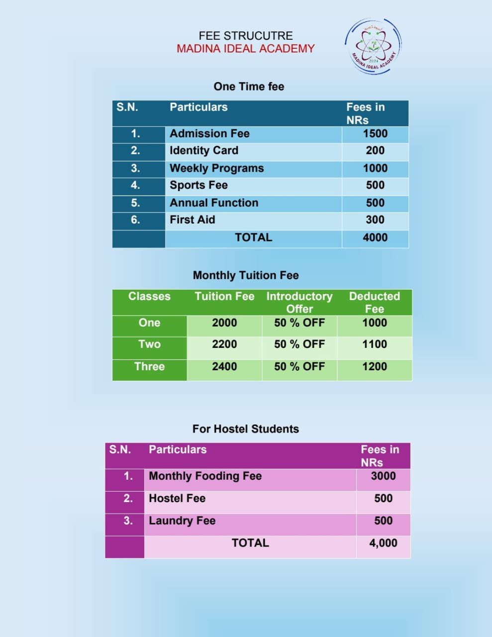 | Classes | Tuition Fee | Introductory Offer | Deducted Fee |